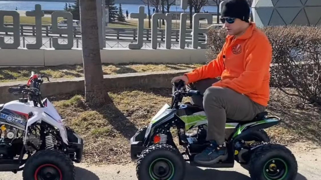 Квадрик оснащен пультом дистанционной остановки и запуска двигателя, бесступенчатым ограничителем скорости, мощности и ускорения