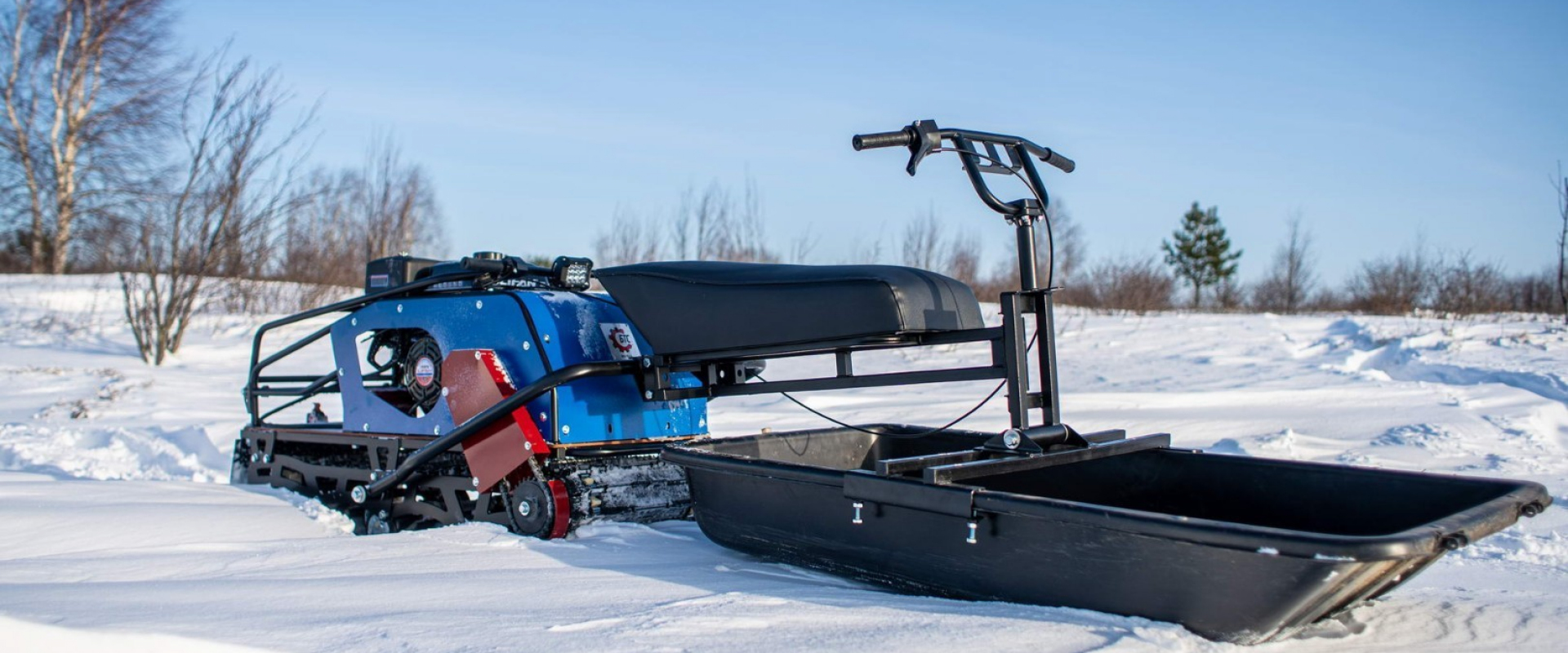 Мотобуксировщик БТС на укороченной раме длиной 1300 мм, без излишеств, имеющий только все самое необходимое для комфортной и безопасной езды.