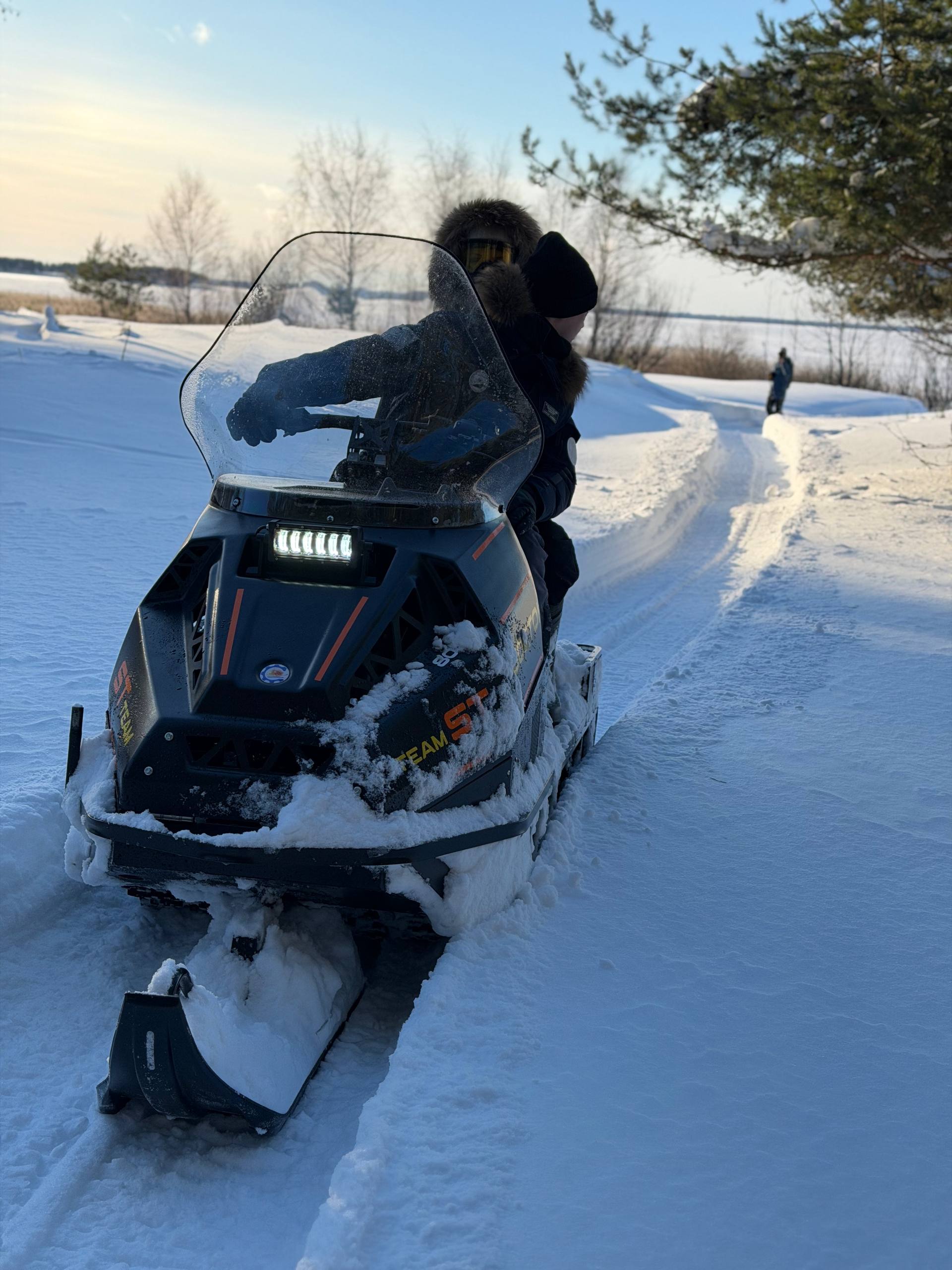 Мы значительно улучшили рулевое управление - теперь снегоход острее реагирует на повороты с минимальным радиусом разворота всего 5 метров на хорошем покрытии, что особенно важно при движении по лесным тропам.
