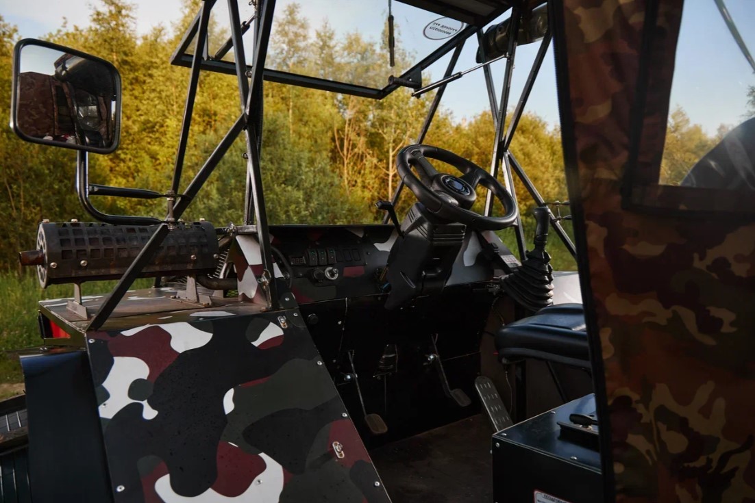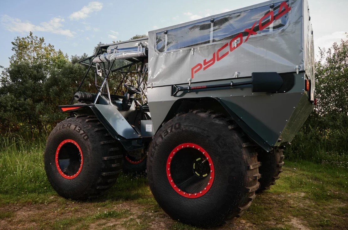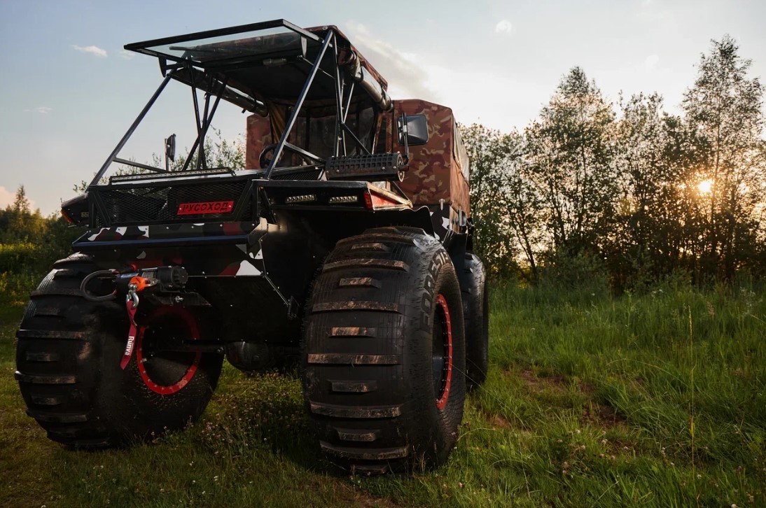 Вездеход легко справится с болотистой месностью, водой и других зонах бездорожья.
